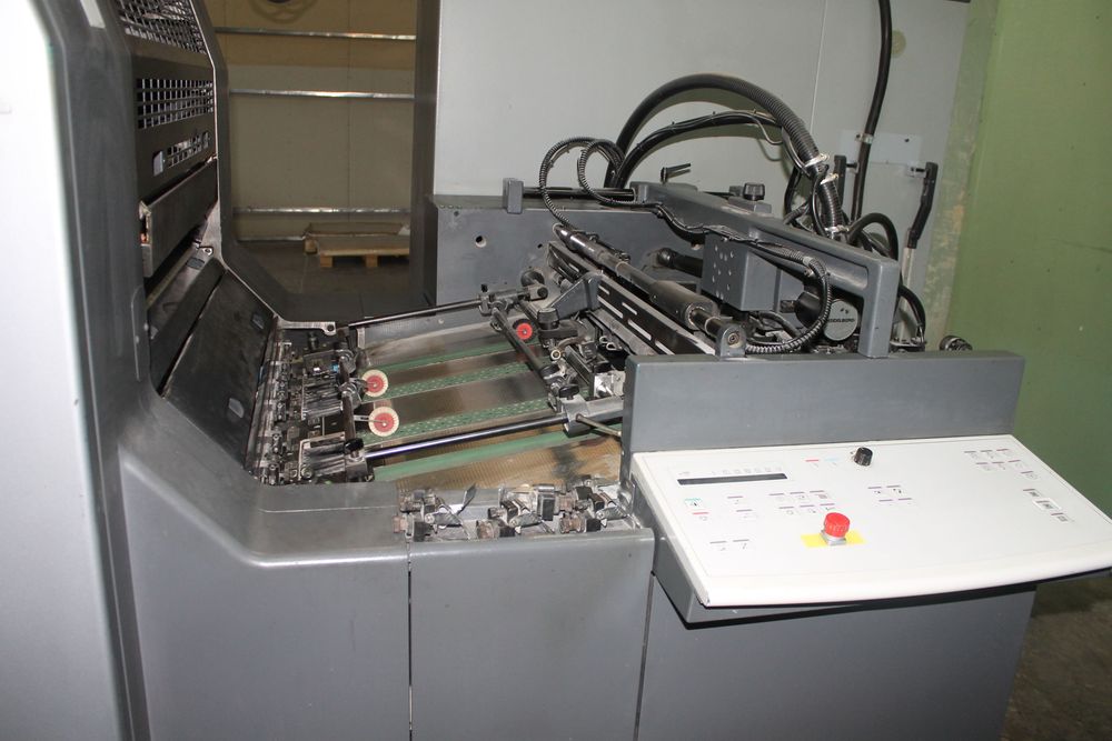 Counter: 70 mio Colors: 5 (5+0 / 2+3) CIP3 (перeдача параметров заказа и профилей красочных зон по сети) CP 2000 Control Center Full automatic perfector Automatic blanket, roller and impression-cylinder washing device Autoplate (semi-automatic plate loader) ITC Ink temperature control Technotrans Beta refrigeration VARIO system Preset - automatic size device in feeder and delivery Powder sprayer Antistatic in feeder and delivery Steelplate in feeder and delivery Non-stop delivery High pile delivery Plate punch Beil 425 Max. paper size: 530x740 mm Image area: 520x740 mm Speed: 15.000 sh/h Power consumption: 62.5 kw Length: 9300 mm (+1500 mm CP2000) Width: 2760 mm Height: 1860 mm Weight netto approx.: 24500 kg Weight brutto approx.: 26200 kg